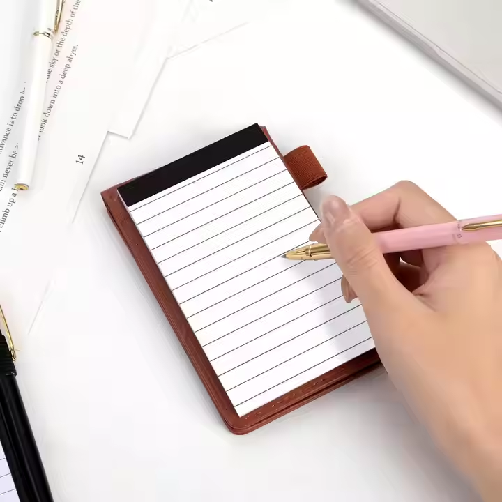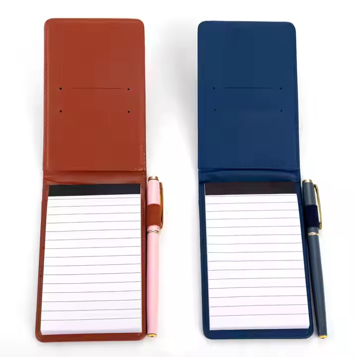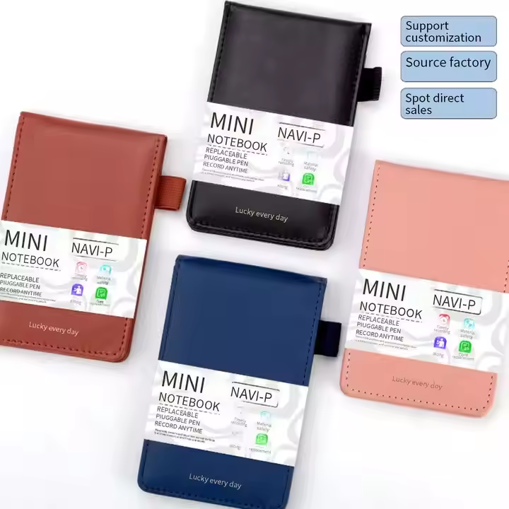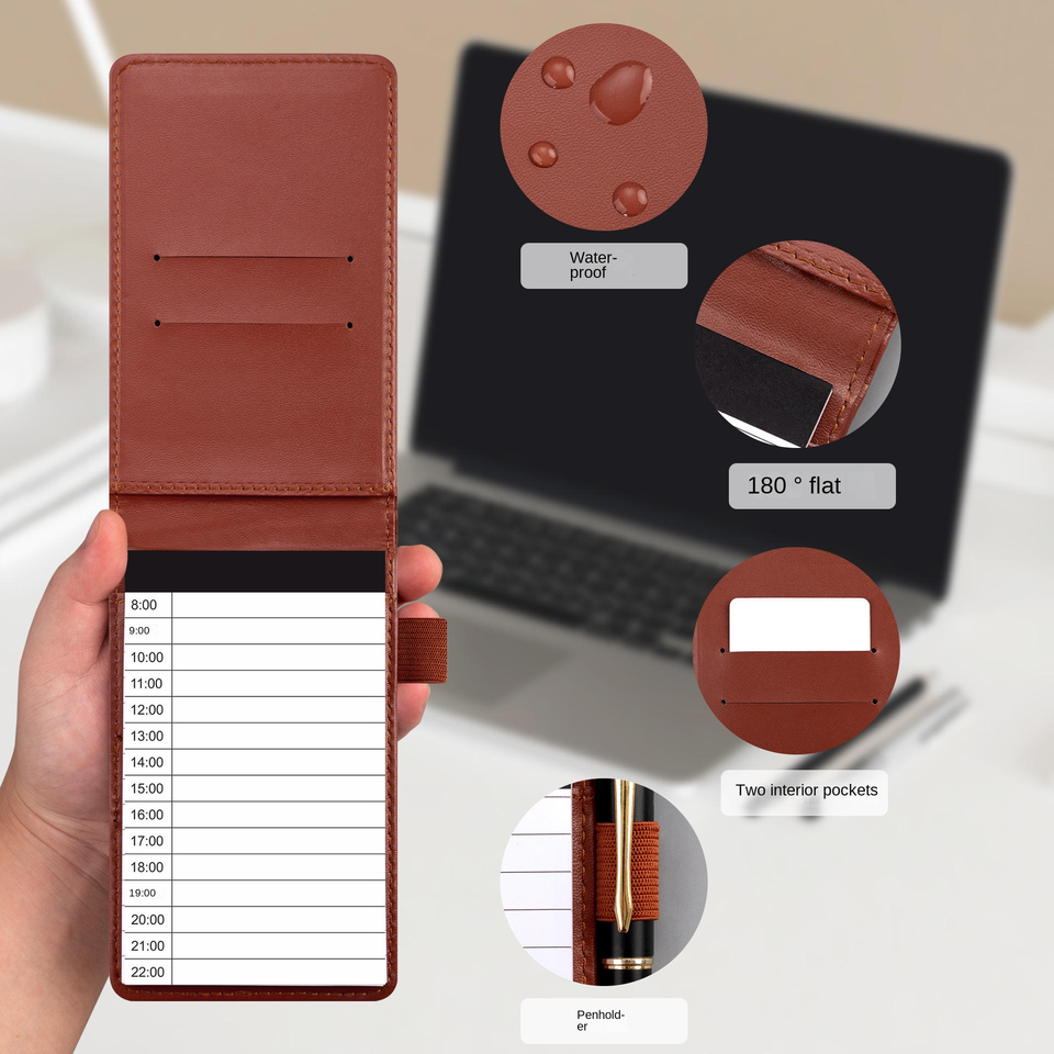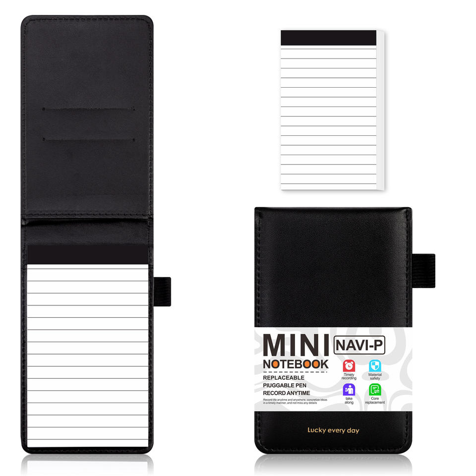 Cuaderno A7 de tapa dura con logo personalizado, cuero PU, alta calidad, resistente al agua, mini portátil, diario con soporte para bolígrafo, proveedor de oficina