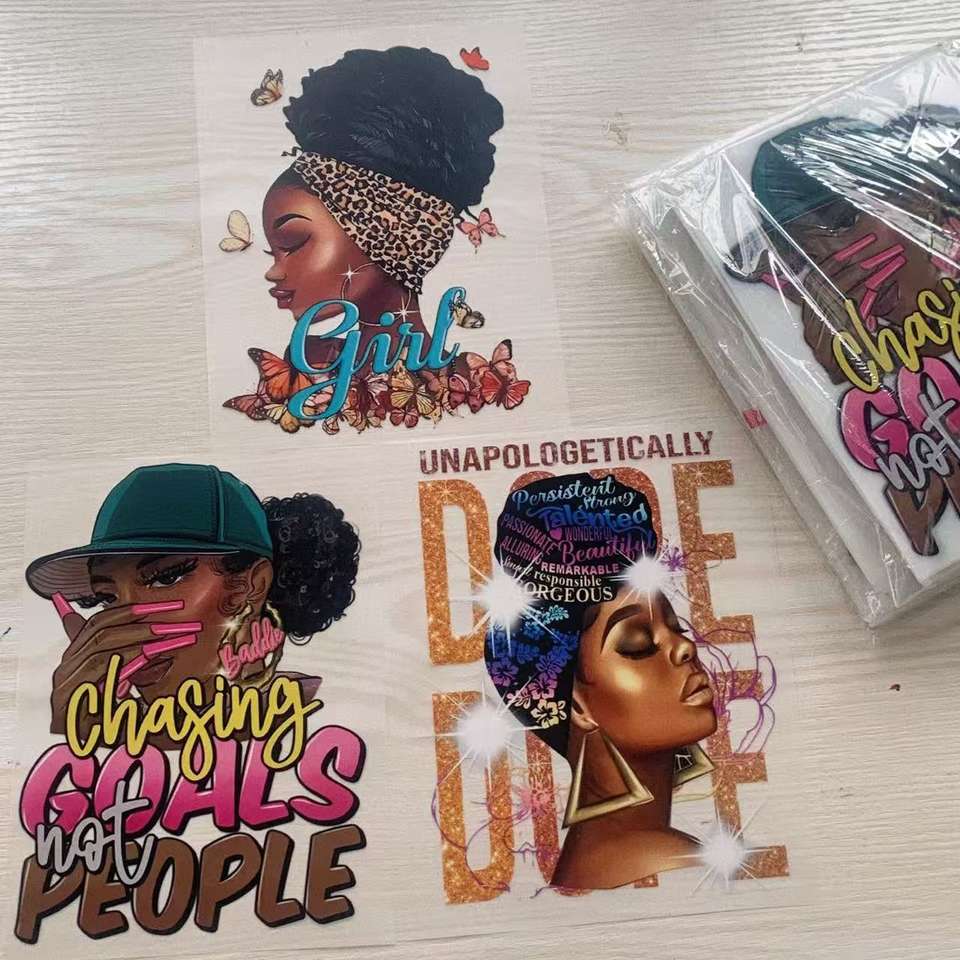 Etiquetas personalizadas de alta calidad Fashion Girl Dtf Transfers Designs Listo para presionar Fácil uso Dtf Transfers para camisetas