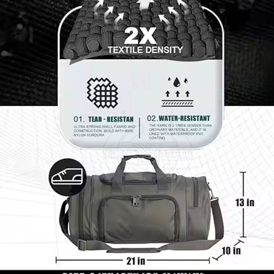 Bolsa Deportiva de Gran Capacidad (30-40L) para Uso en Exteriores, Impermeable, de Nailon, Fabricada en Pakistán, Marca NAMISSM INTERPRIZE NI-303, Alta Calidad y Personalizable