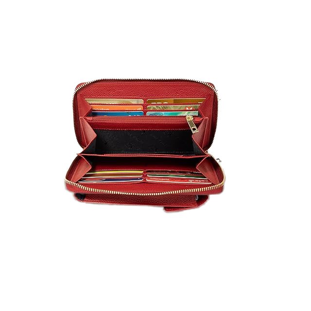 Tarjetero de cuero PU para mujer de gran capacidad personalizado de alta calidad, monedero plegable con forro de satén y cremallera RFID, monedero largo para mujer