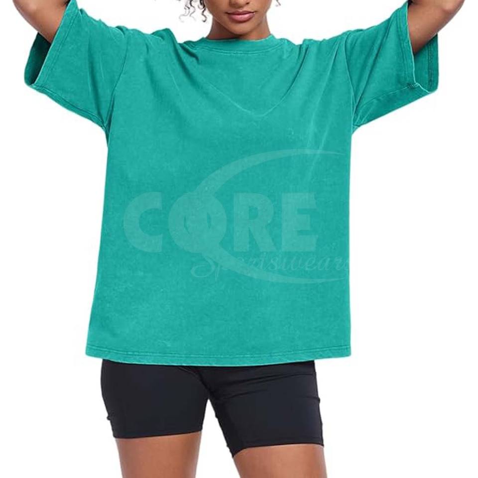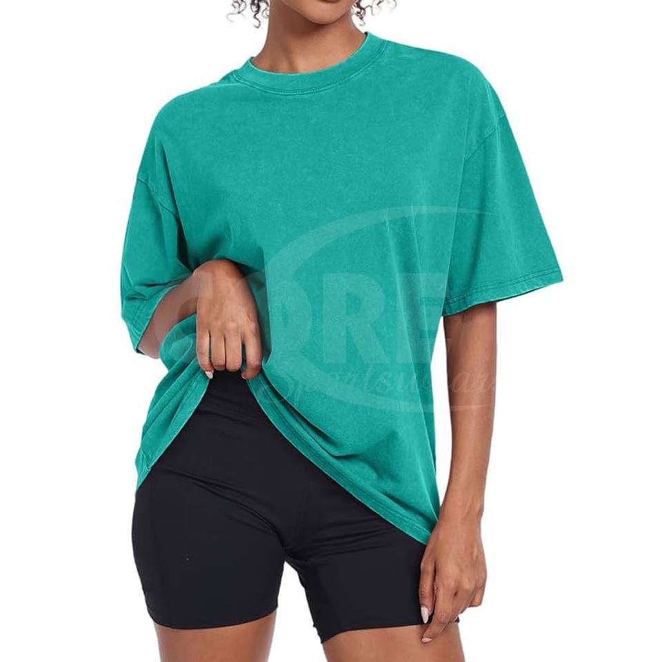 Camisetas transpirables de manga corta holgadas de gran tamaño con lavado ácido de Algodón 100% con logotipo personalizado de alta calidad para mujer