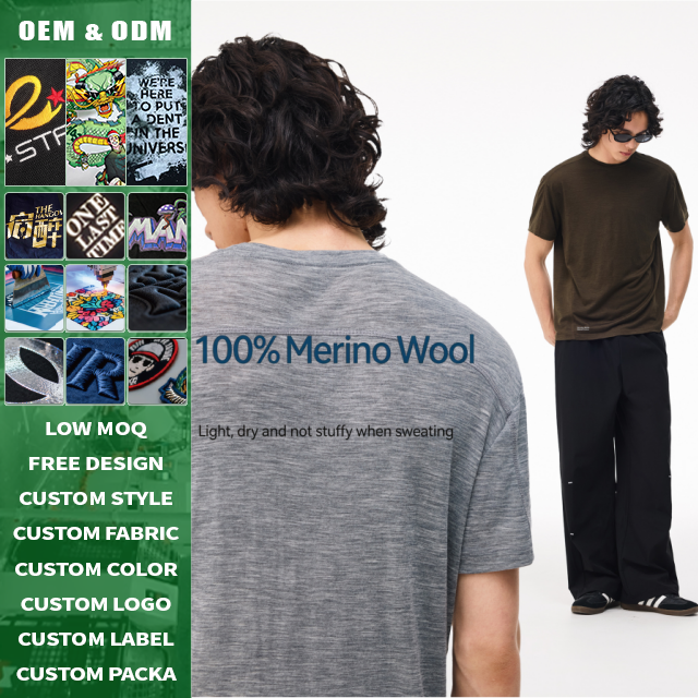 Camiseta de Manga Corta Transpirable de Lana Merino 100% con Logotipo Personalizado de Alta Calidad, Lavable a Máquina, para Deportes al Aire Libre, para Hombre y Mujer