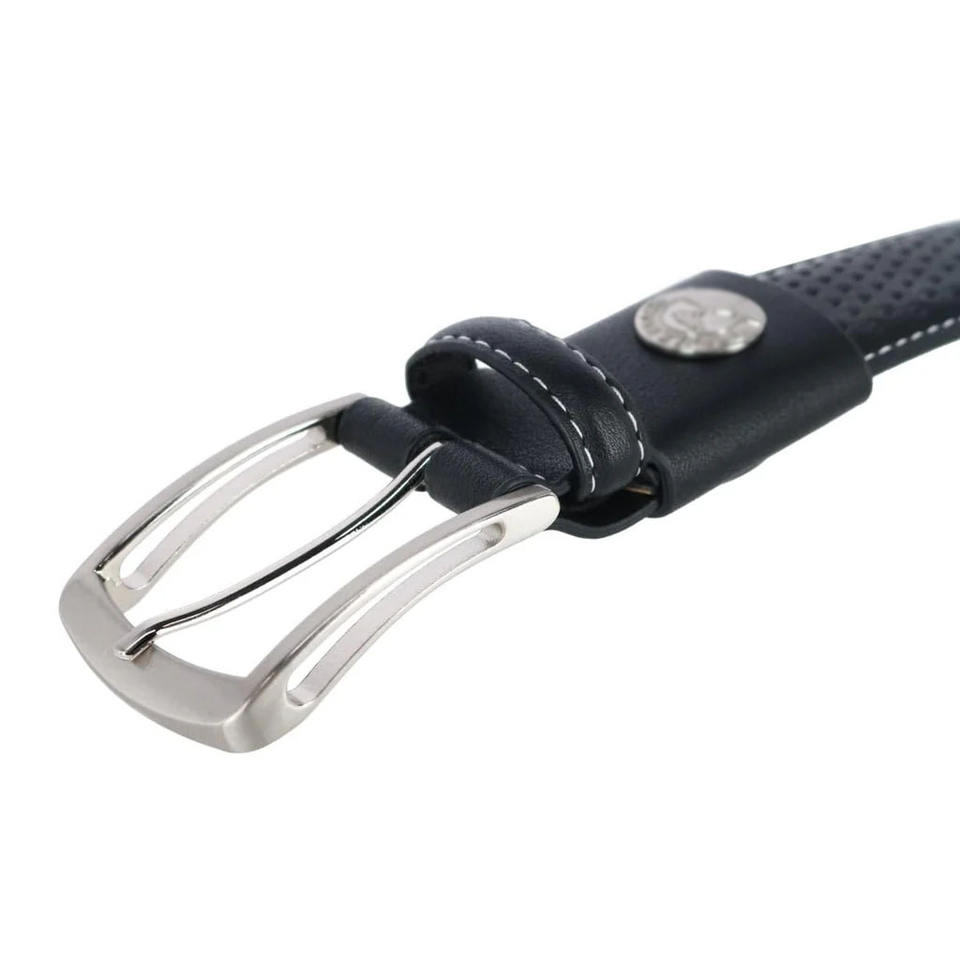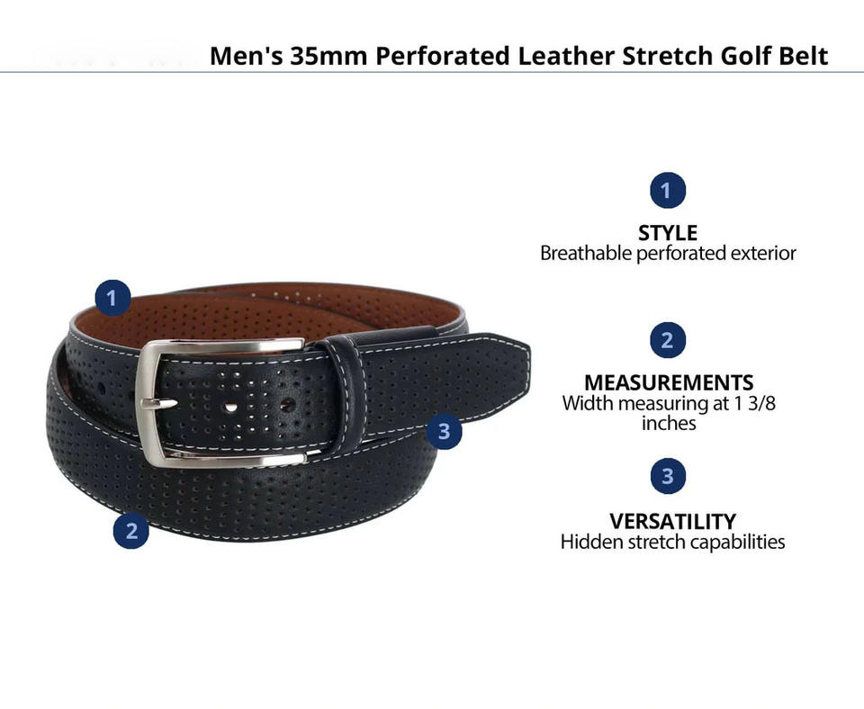 Cinturón de golf elástico perforado de 35mm con logotipo personalizado de alta calidad para hombres cuero genuino negro con hebilla de aleación OEM al por mayor