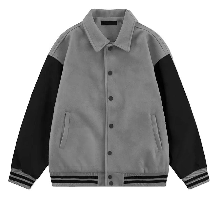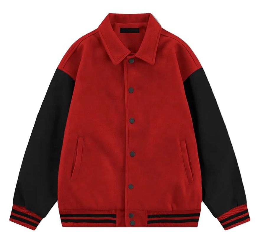 Chaqueta universitaria en blanco con logotipo personalizado de alta calidad, chaqueta universitaria de béisbol con bolsillo frontal de Letterman de lana para hombre