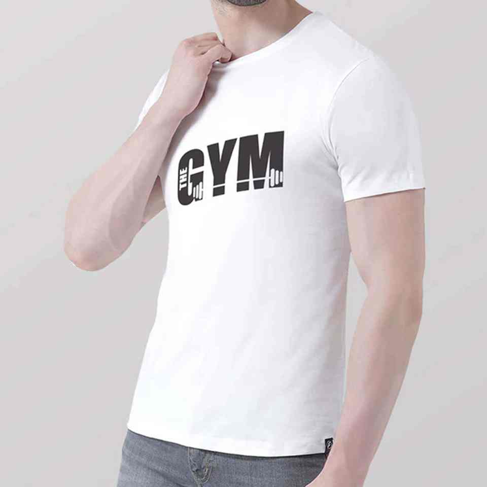 Camiseta de poliéster transpirable para hombre, de alta calidad, con logo personalizado, estampada y de corte ajustado.