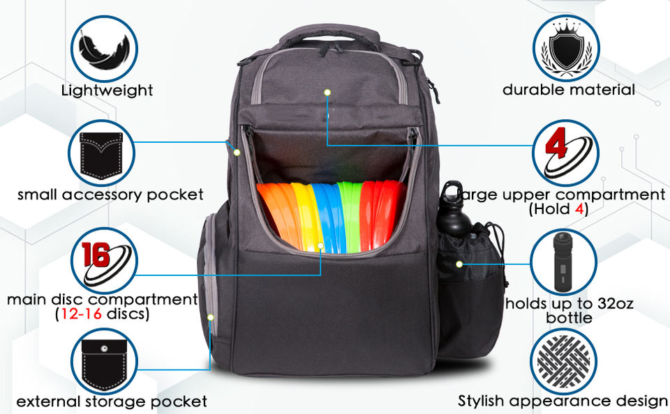 Ventaja:Bolsa de disc golf duradera y de gran capacidad