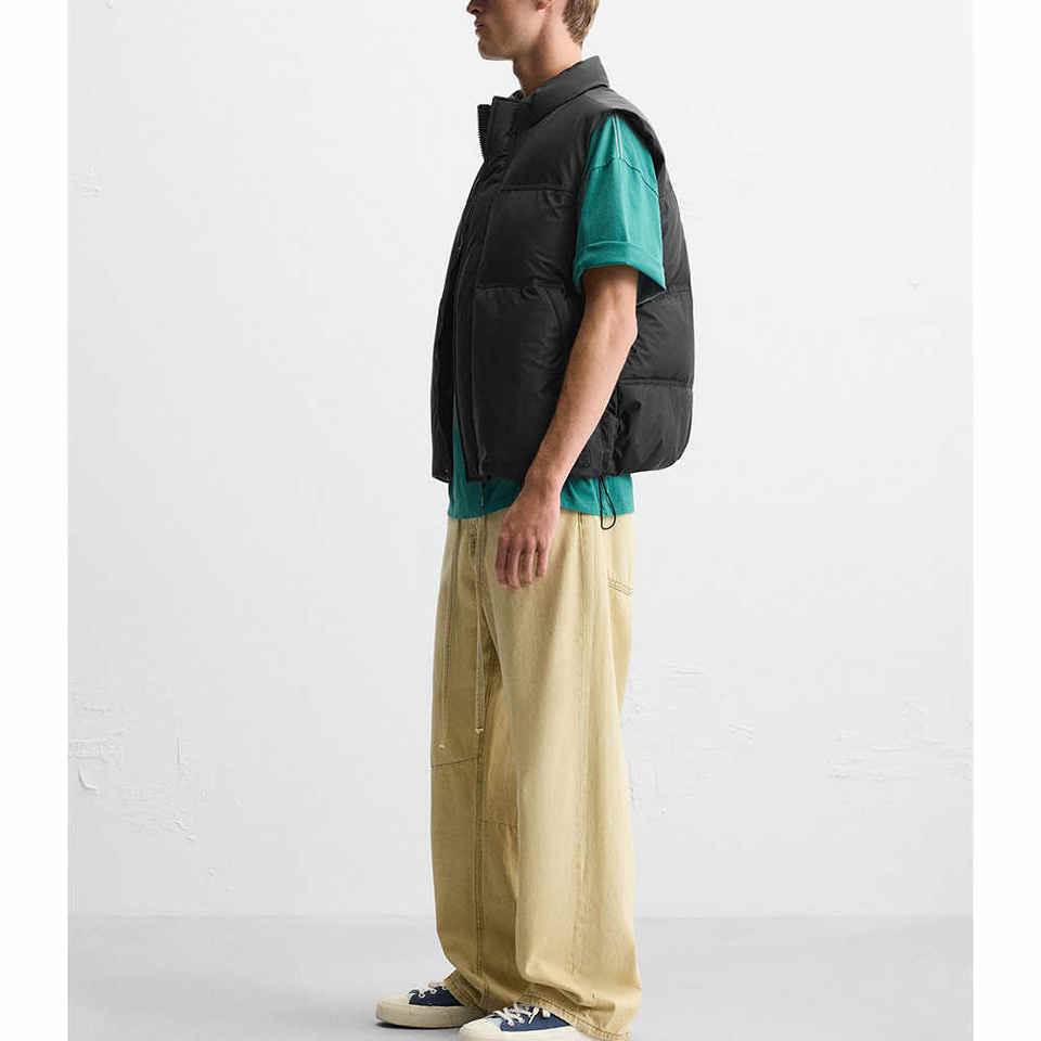 Chaleco de plumón con logotipo personalizado de alta calidad, chaqueta acolchada sin mangas de poliéster y nailon impermeable con cremallera de invierno, chaleco para hombre