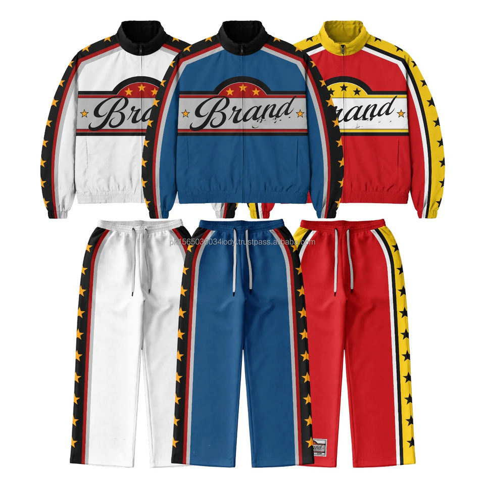 Conjunto de chándal cortavientos de nailon de alta calidad con logotipo personalizado, con media cremallera, para hombre, talla grande.