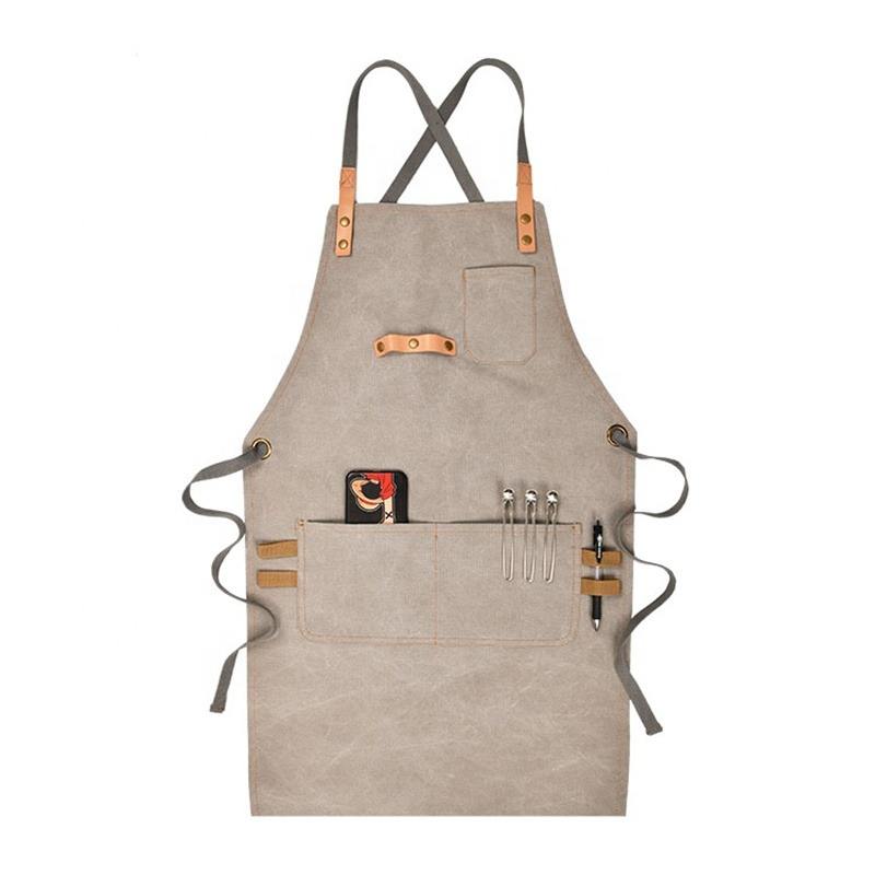 Delantal de lona de cuero con logotipo personalizado de alta calidad, impermeable y a prueba de aceite para el hogar, cafetería, cocina, ropa de trabajo