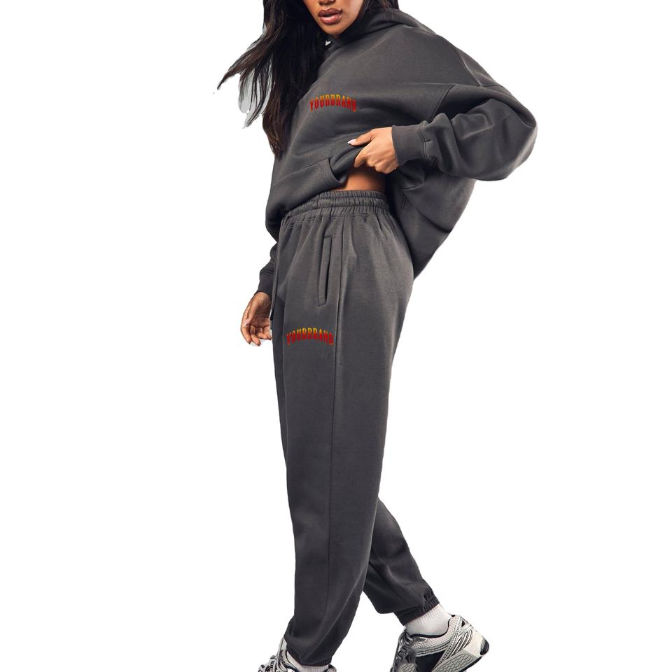 Conjunto Deportivo de Dos Piezas de Felpa Sólida con Logotipo Personalizado de Alta Calidad, Transpirable, Holgado, Chándal para Mujer, Sudadera con Capucha al por Mayor