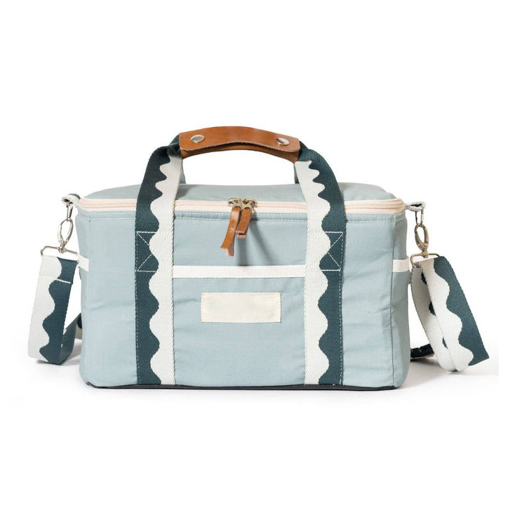 Bolsa térmica de algodón reciclado con aislamiento térmico de viaje a rayas con logotipo personalizado de alta calidad, bolsa refrigeradora impermeable, correa para el hombro, asas de transporte