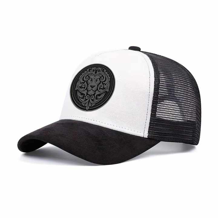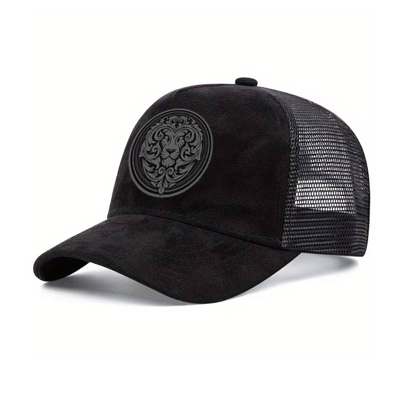 Gorra de camionero de malla de 5 paneles de gamuza con logotipo personalizado de alta calidad, tela transpirable, moda Hip Hop elegante para actuación en la playa al aire libre