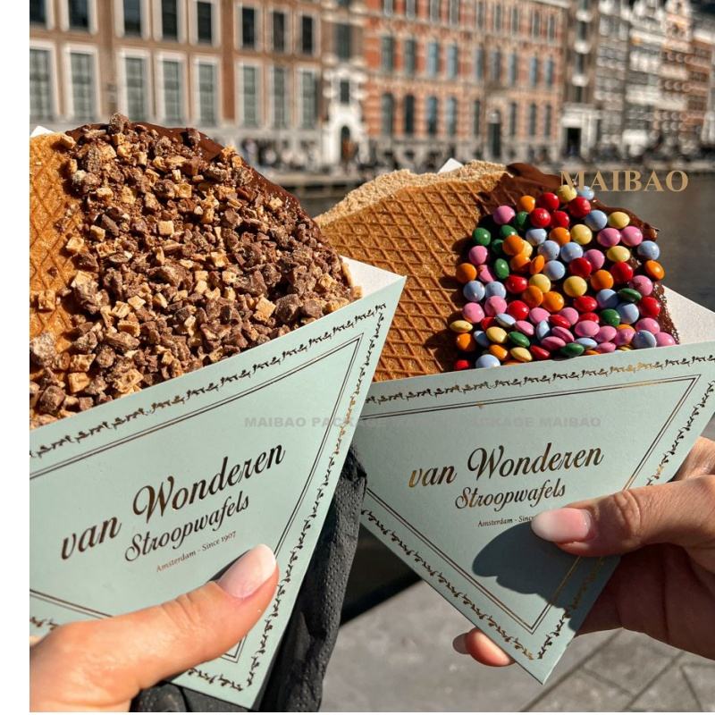 Cajas de embalaje Kraft con logotipo personalizado de alta calidad para llevar para patatas fritas, taza de cono de crepe, Stroopwaffles de burbujas, Stroopwafel Sushi