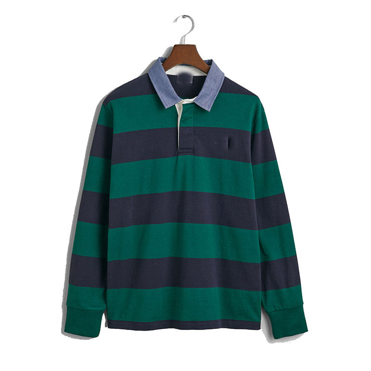 Polo de manga larga personalizado de alta calidad, cuello a rayas de Rugby a la moda transpirable para hombres, camisetas de Rugby con estampado Digital teñido liso