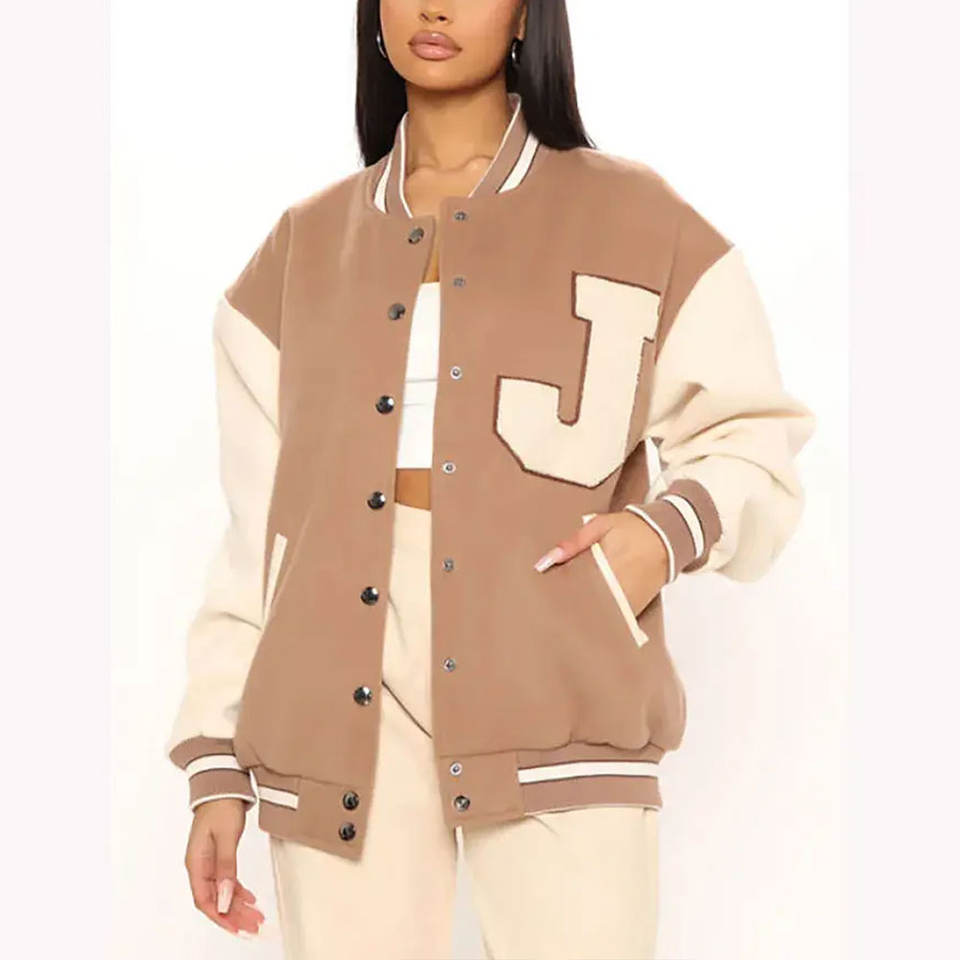 Chaquetas Letterman Personalizadas de Manga Larga para Mujer de Alta Calidad a Precio Económico, Chaqueta Universitaria Personalizada de Forro Polar para Mujer