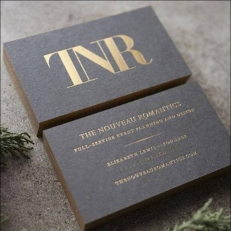 Tarjetas de presentación personalizadas de alta calidad con impresión de logotipos en lámina dorada
