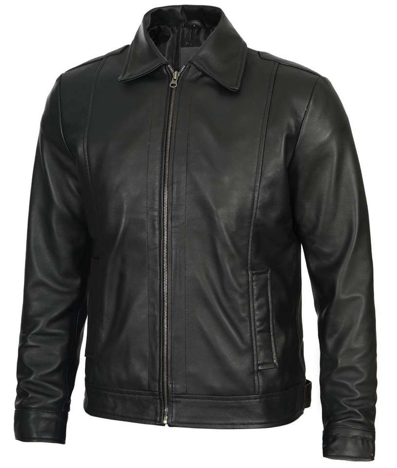 Chaqueta de cuero de piel de oveja auténtica negra hecha a medida de alta calidad para hombre, chaqueta de cuero de manga larga para exteriores de invierno a la moda