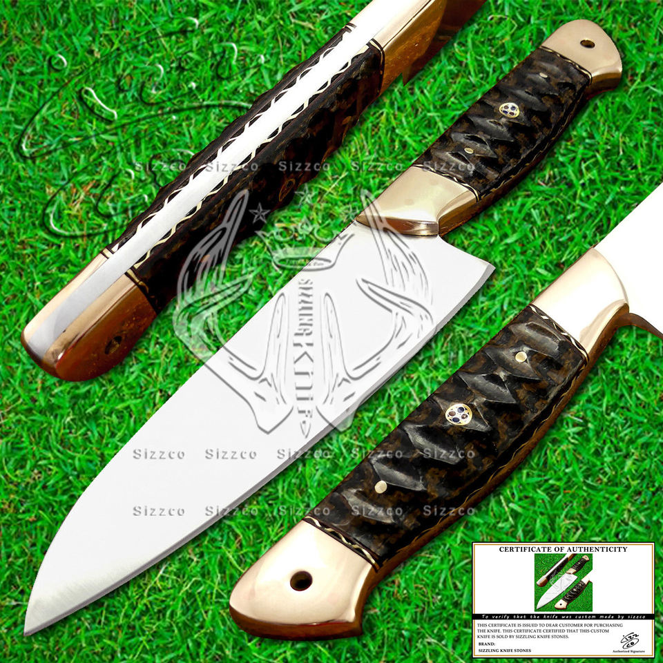 Cuchillo de Chef de cocina de hoja D2 hecho a medida de alta calidad, corte suave, agarre de mano perfecto con Funda de cuero de cobre de cuerno de toro