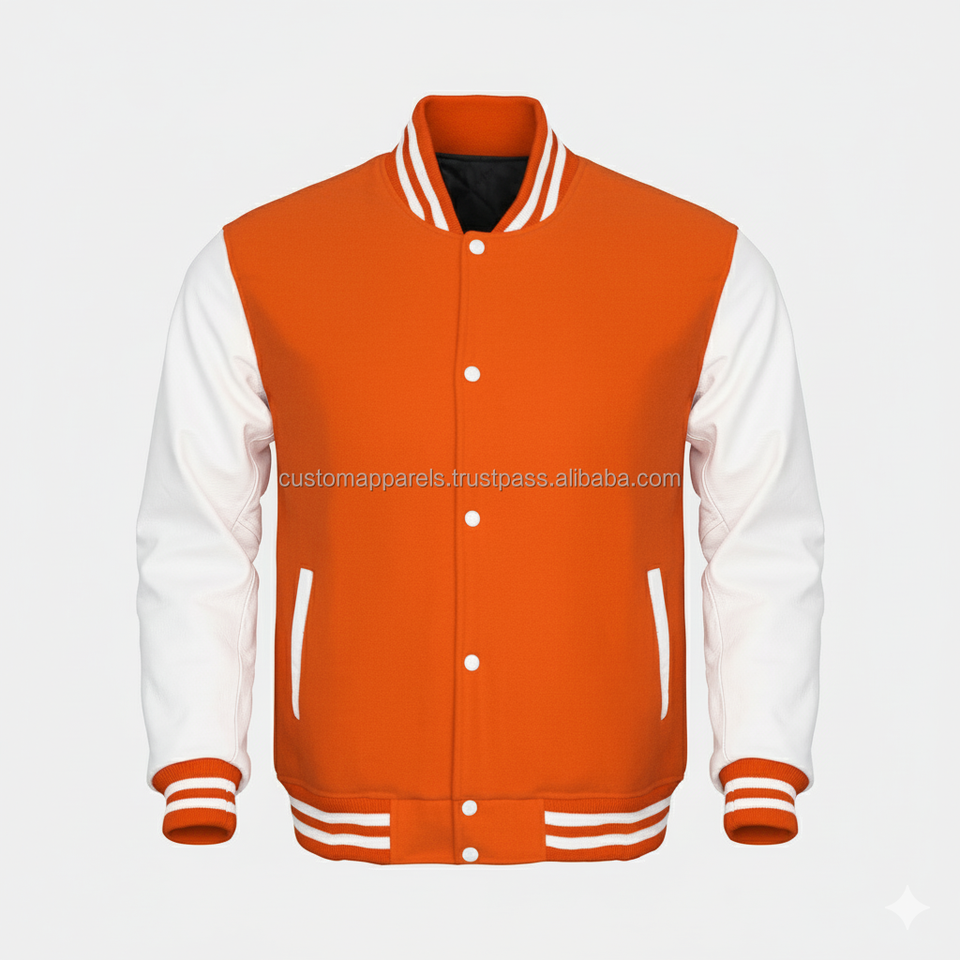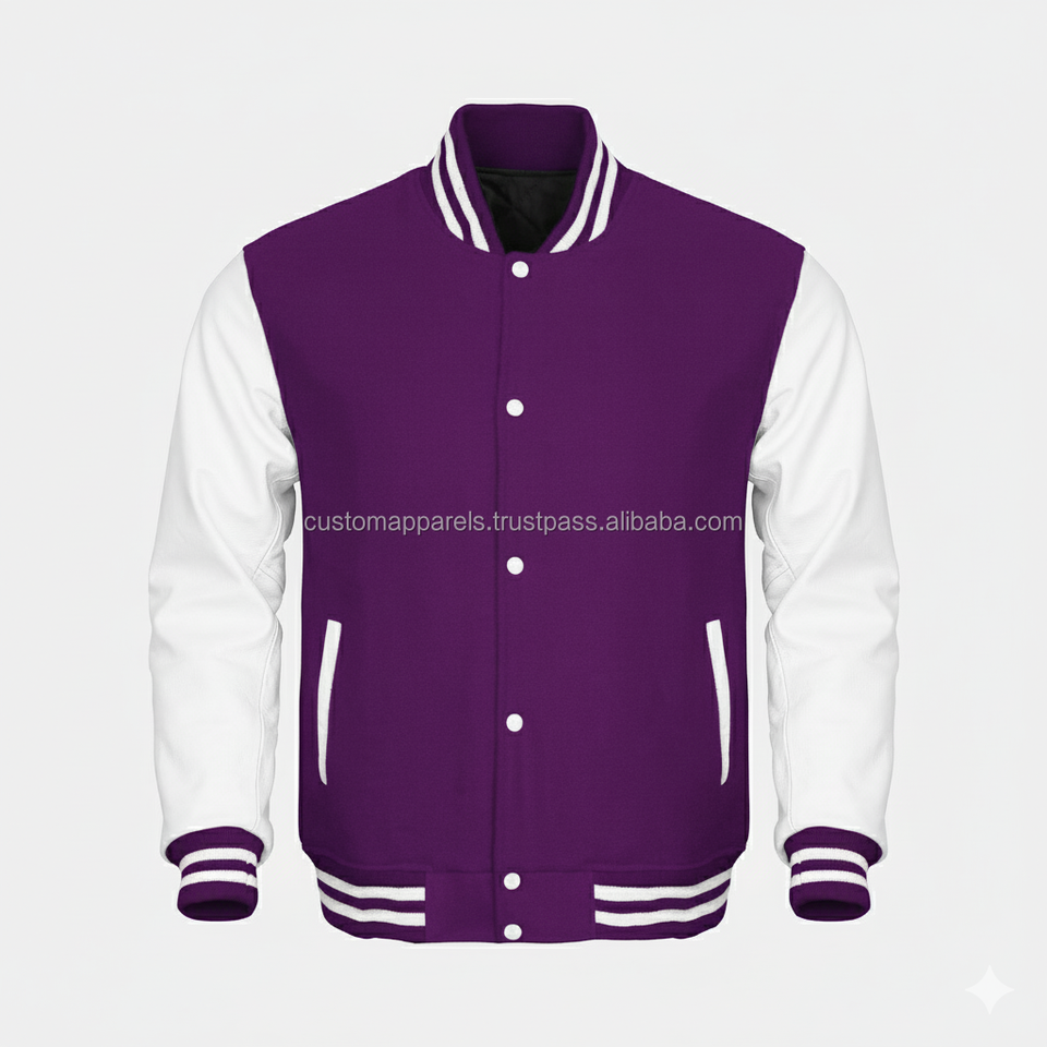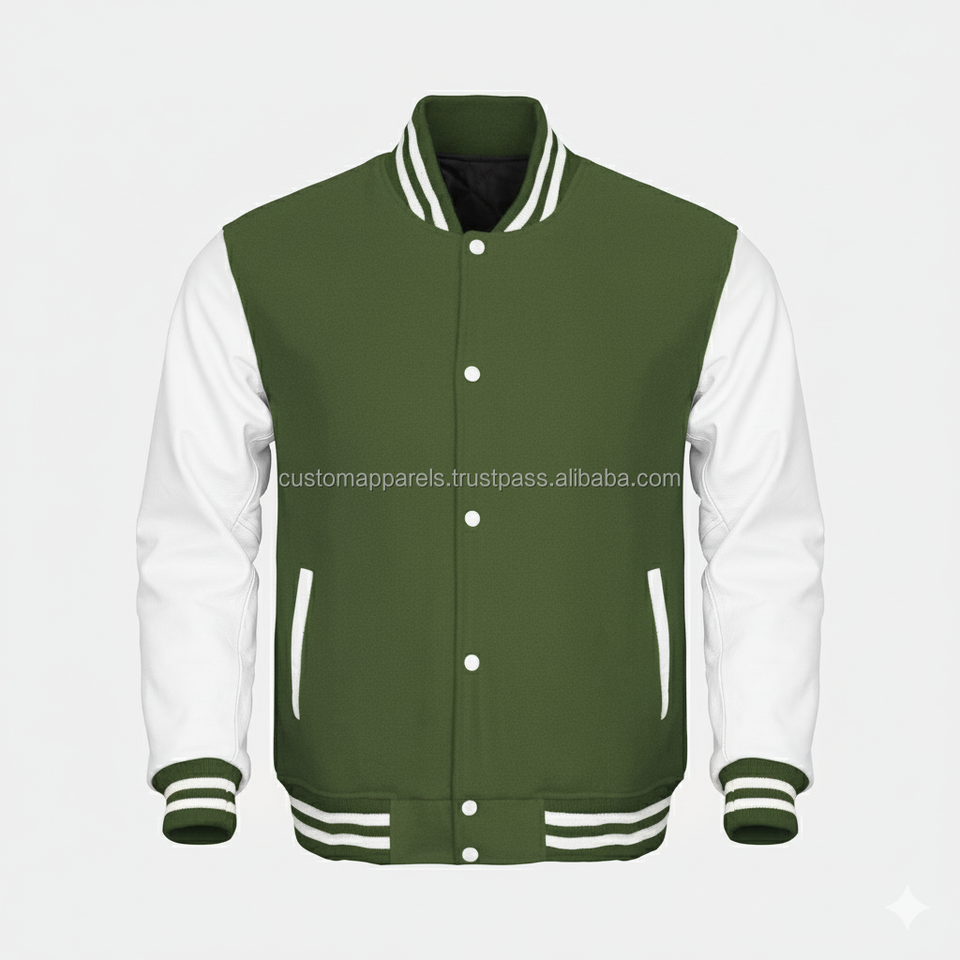 Chaqueta Varsity Personalizada de Alta Calidad para Hombre, con Bordado Decorativo, Logotipo Frontal, Diseño en Blanco, Chaqueta de Premiación, Fábrica de Ropa