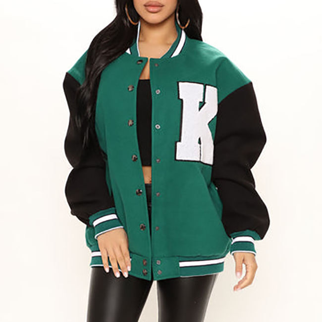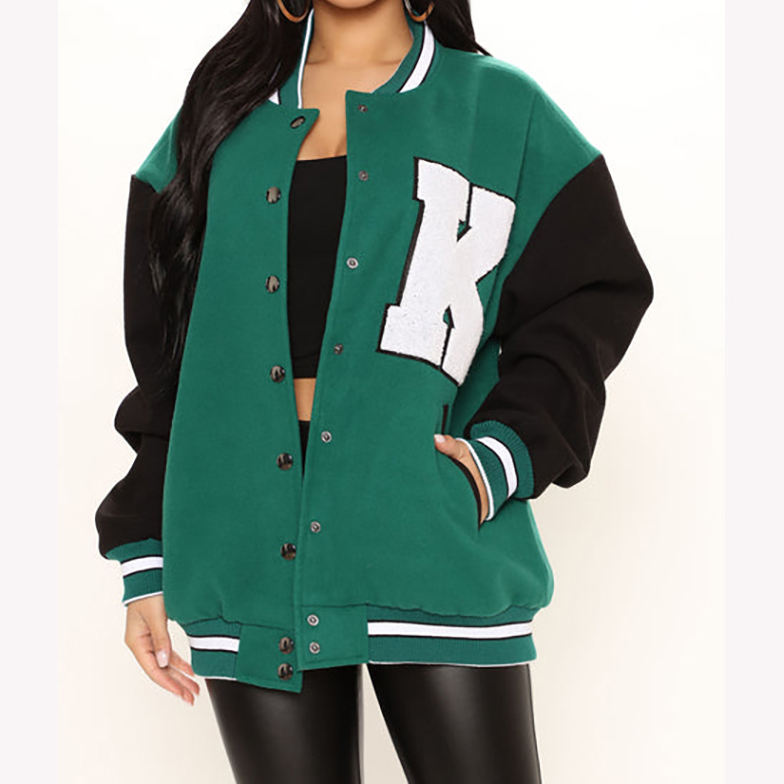 Chaqueta universitaria de alta calidad de fabricante personalizado, chaqueta universitaria de lana en blanco con el logotipo bordado por el cliente de su marca, chaqueta universitaria de béisbol para mujer