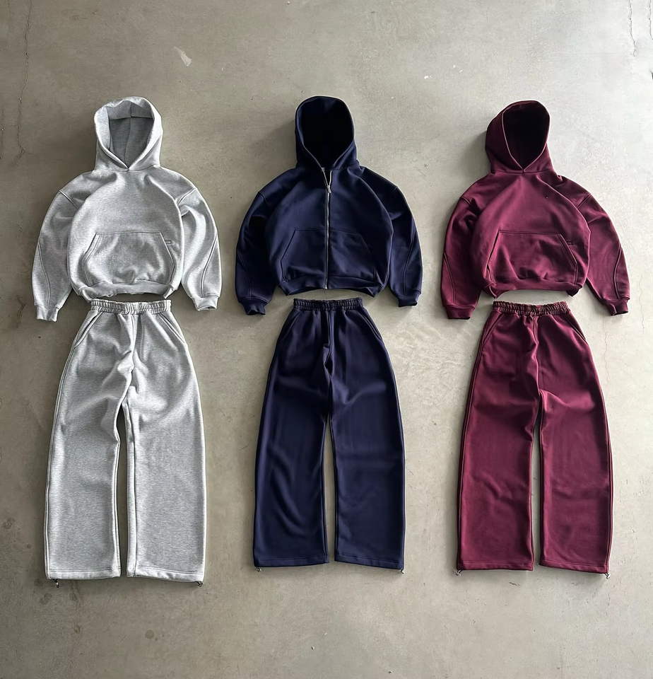 Chándal personalizado de alta calidad para hombre, conjuntos de aspecto holgado de gran tamaño, pantalones de pierna ancha, ropa de calle, Tops 2025, conjuntos de ropa para hombre