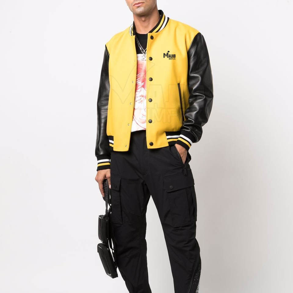 Chaqueta de béisbol personalizada de alta calidad para hombre, cuello levantado con nuevo diseño de letras, duradera para la temporada de invierno