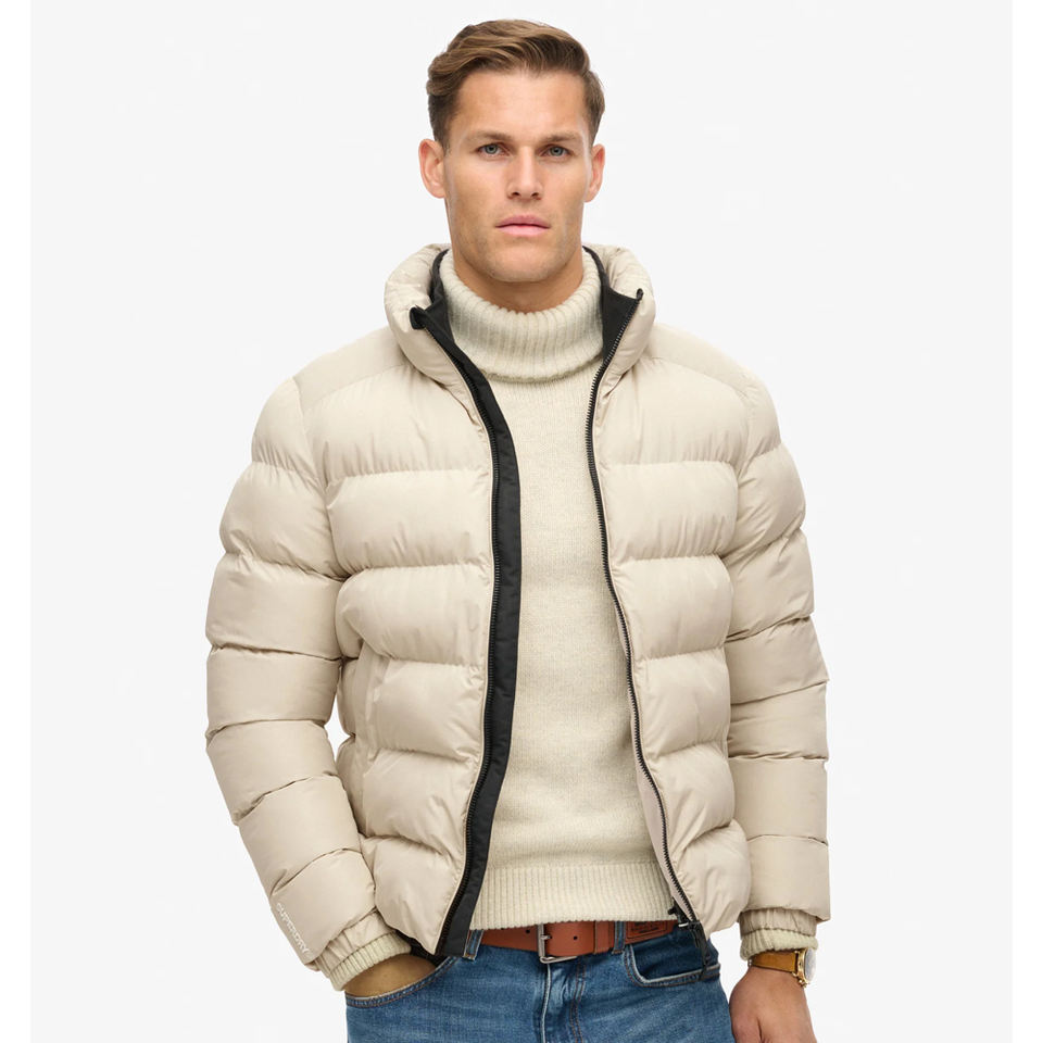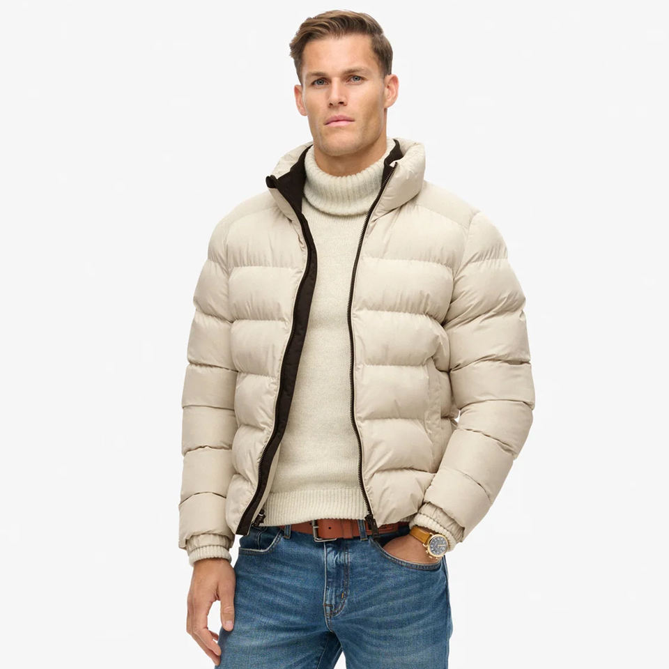 Chaqueta acolchada Beige personalizada de alta calidad para hombre, abrigo alternativo de invierno cálido y ligero, chaqueta de burbujas acolchada con cremallera