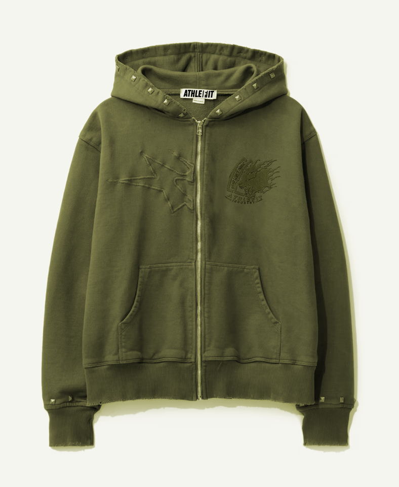 Sudadera con capucha y cremallera de alta calidad personalizada para hombre, forro polar de algodón pesado, estilo Hip Hop, lavado de Color perfecto, logotipo en relieve cuadrado