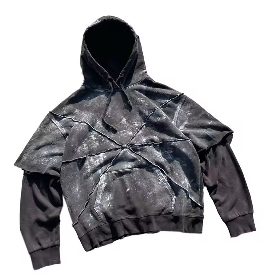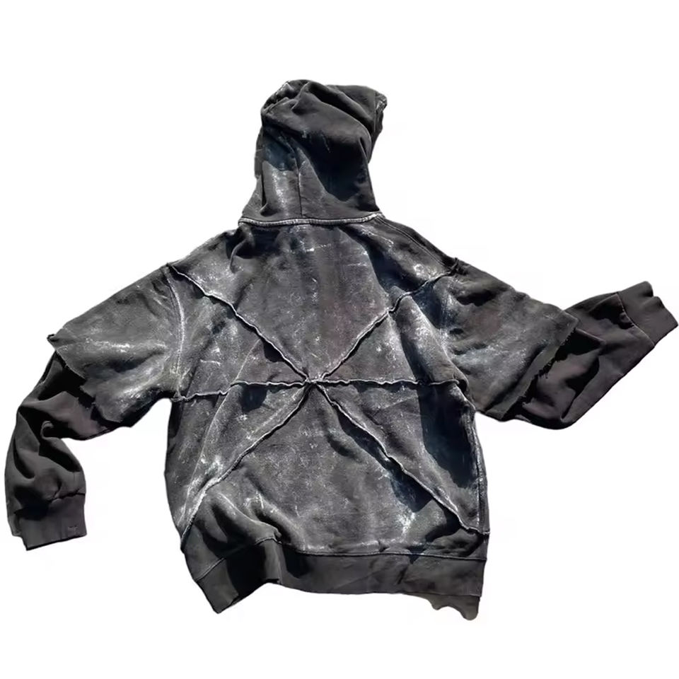 Alta calidad personalizado hombres francés Terry Fleece Hoodie Vintage Sun Faded ácido lavado desgastado estilo de gran tamaño 3D invierno