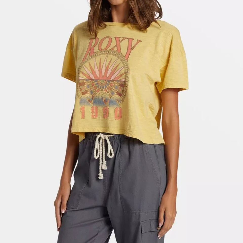 Camiseta básica de algodón con cuello redondo para mujer