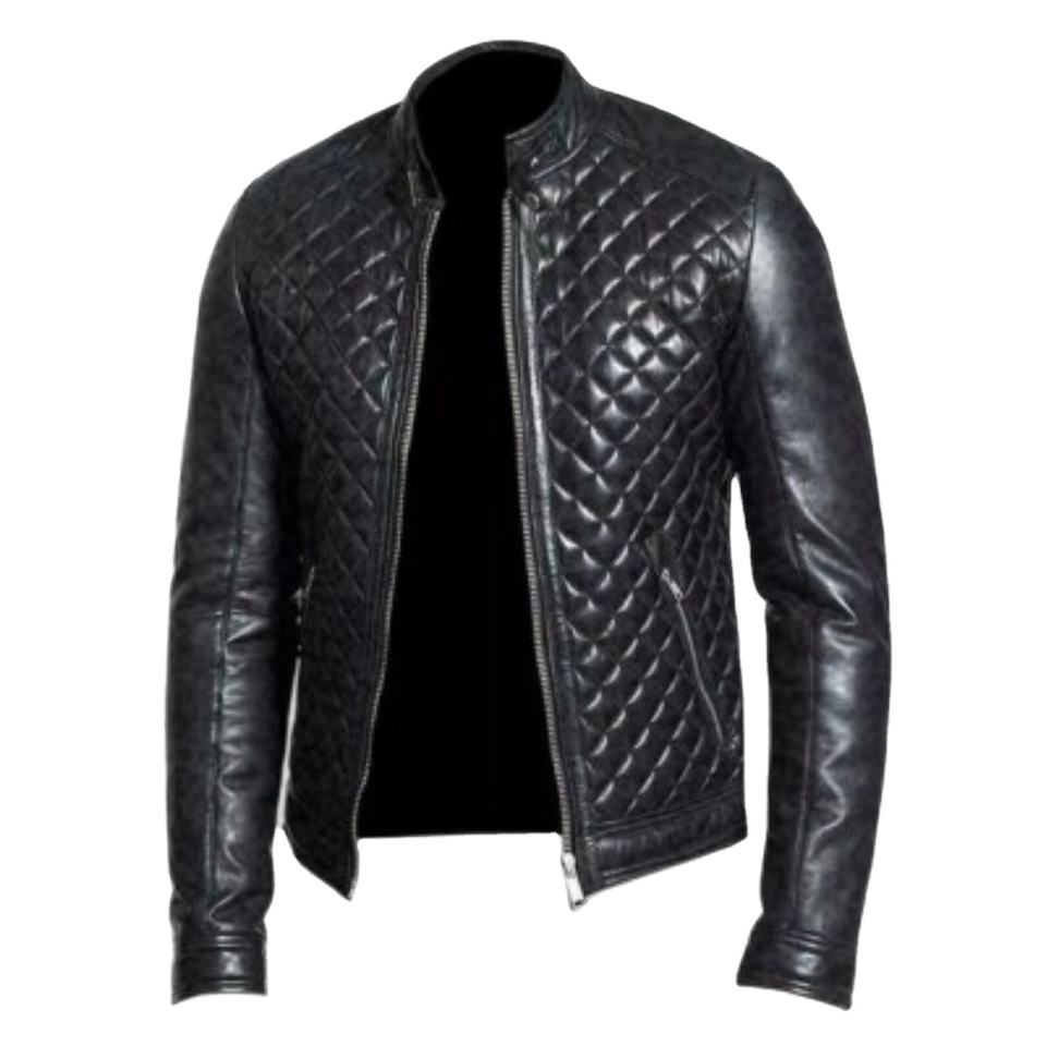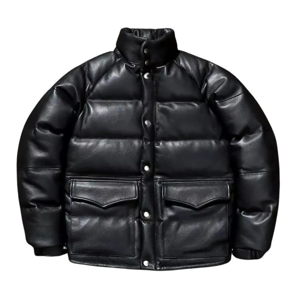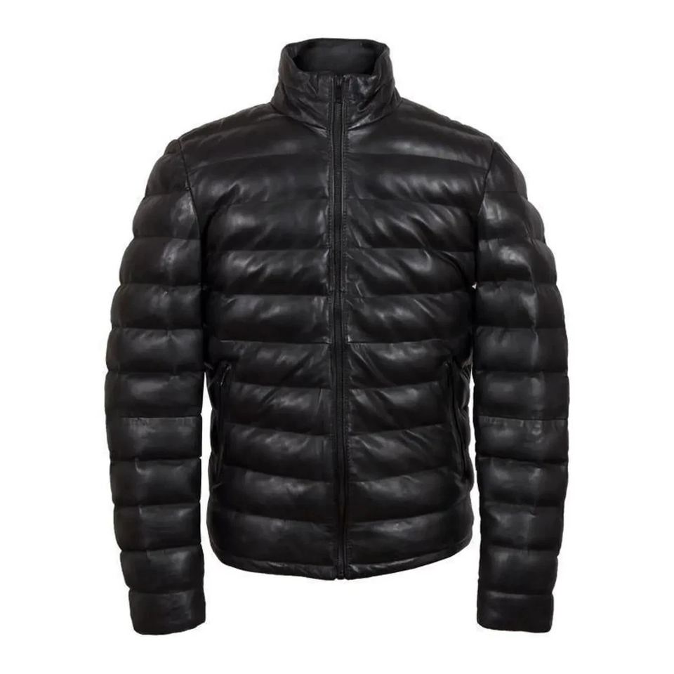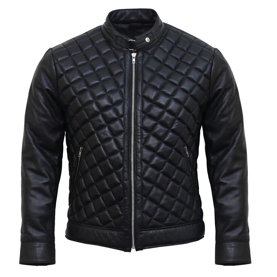 Chaqueta de Cuero de Oveja Genuino Acolchada Personalizada de Alta Calidad para Hombre