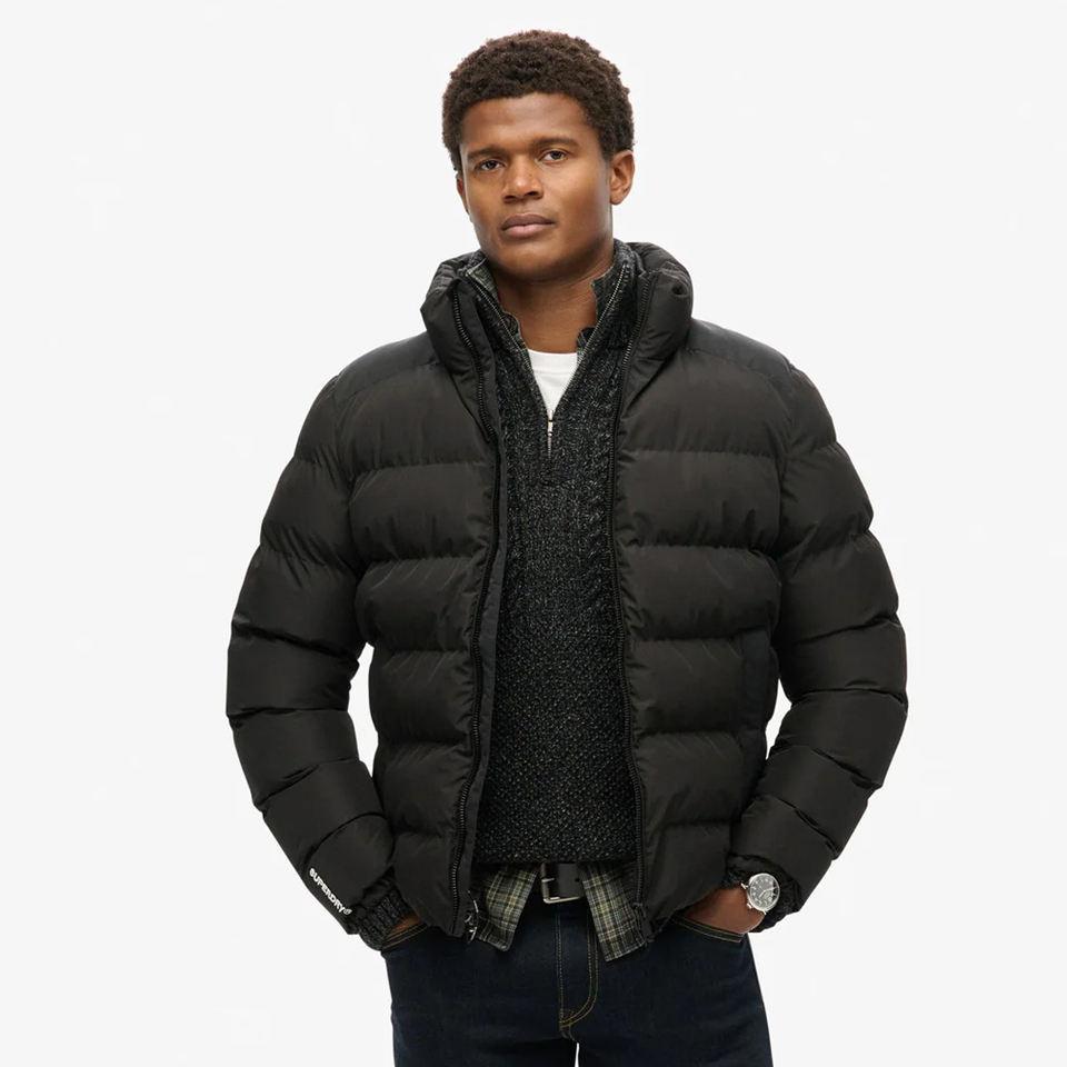 Chaqueta acolchada negra personalizada de alta calidad para hombre, abrigo alternativo ligero cálido de invierno, chaqueta acolchada de burbujas con cremallera