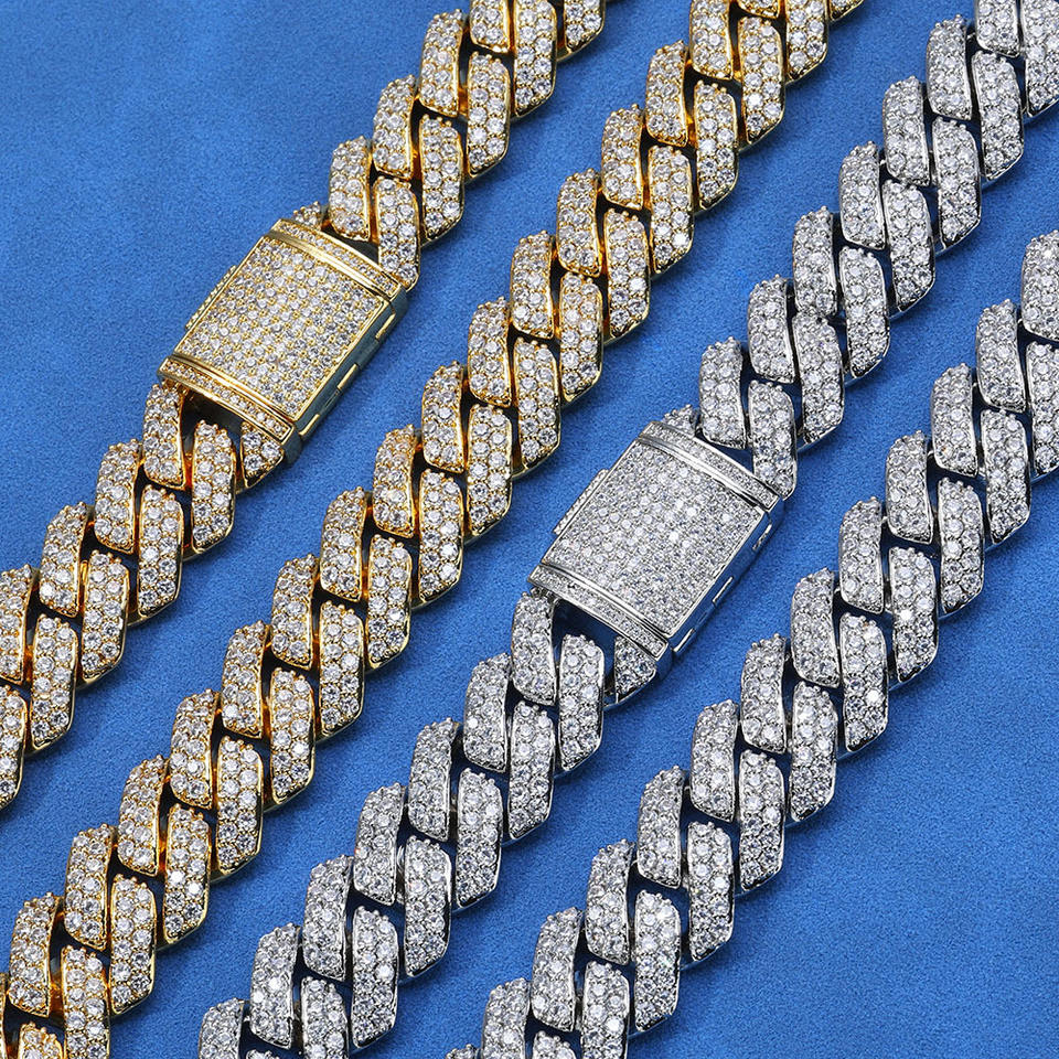 Cadena Cubana Miami de Moissanita Personalizada de Alta Calidad, Plata 925, Chapada en Oro de 18K, Collar Hip Hop Bling Iced para Hombre y Mujer