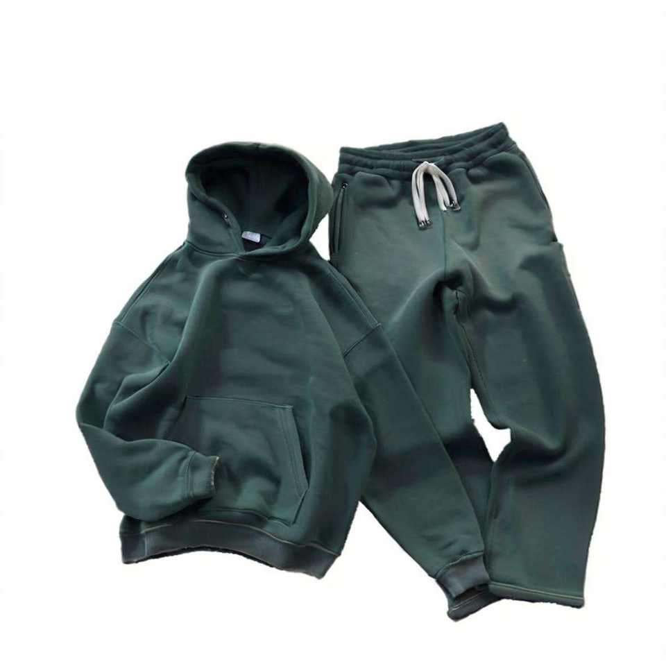Conjunto de Chándal Oversize de Alta Calidad con Lavado Ácido, Estilo Vintage Desgastado por el Sol, Sudadera con Capucha y Pantalones de Chándal 100% Algodón, Ropa Urbana para Hombre