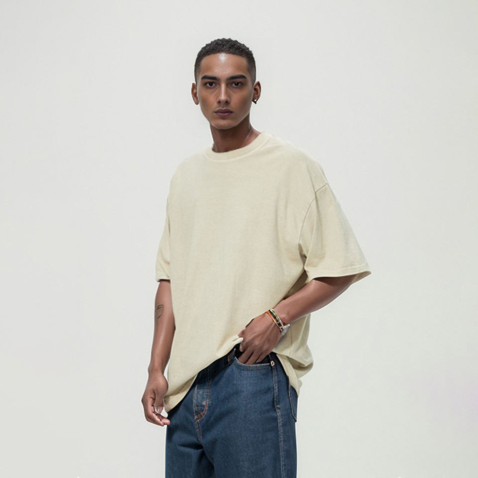 Alta calidad personalizado de gran tamaño en blanco hombres 100% algodón estampado Vintage venta al por mayor ácido lavado camiseta con bolsillos camiseta para hombres