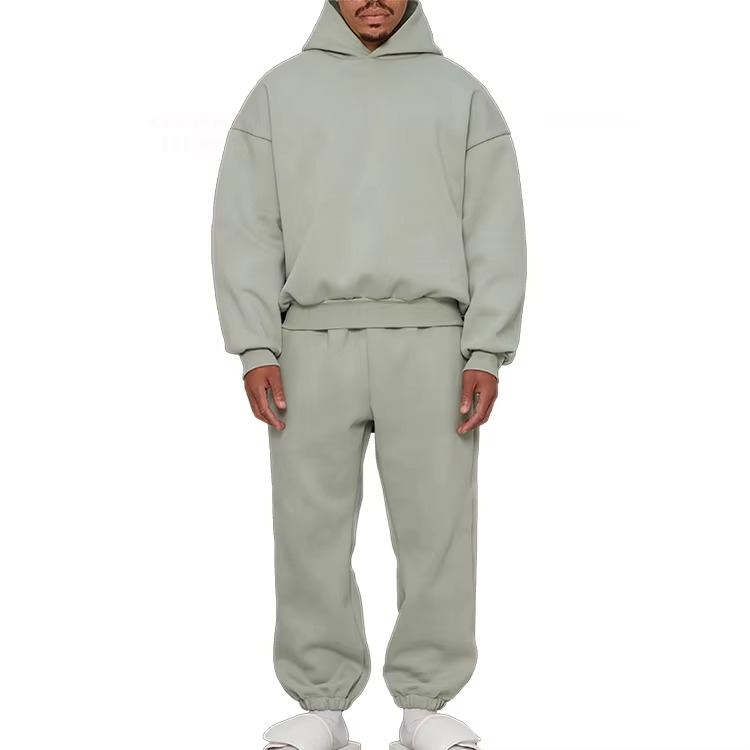 Sudadera con capucha y pantalones de chándal de algodón de rizo francés de gran tamaño para hombre con bordado de parche personalizado de alta calidad