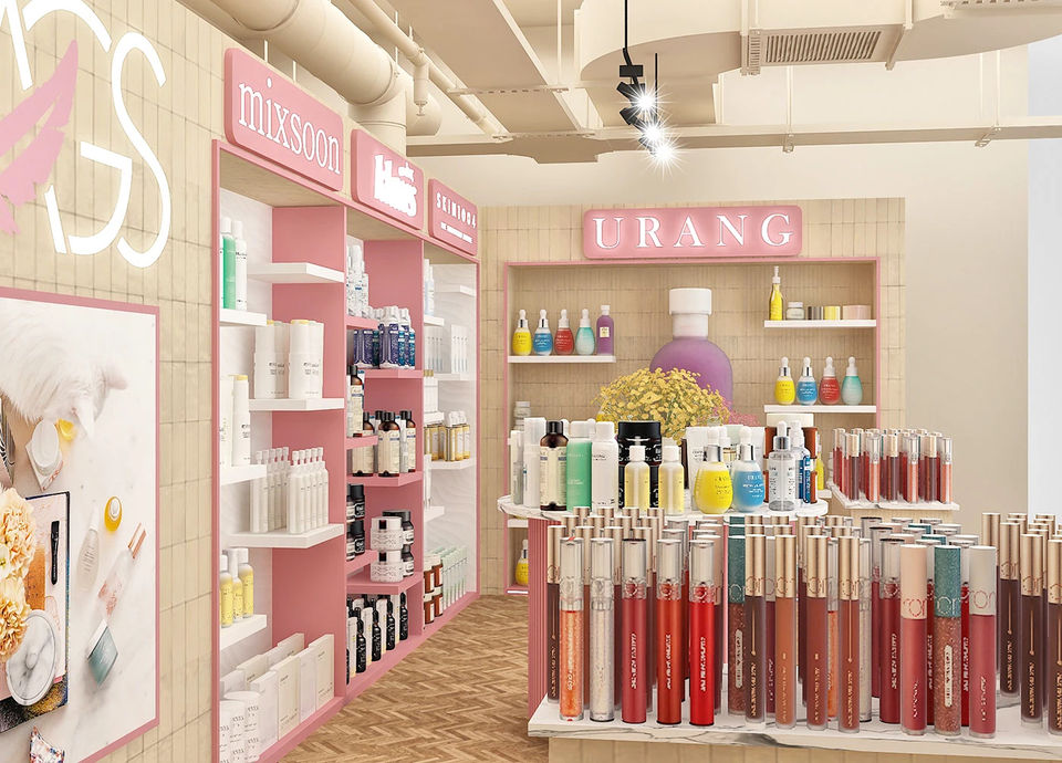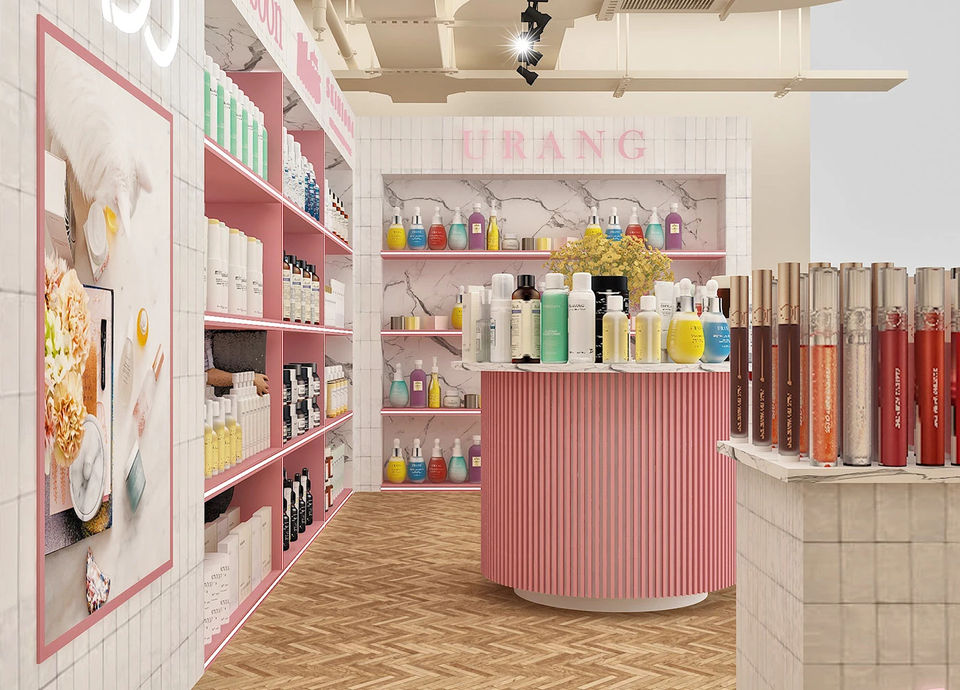 Mostrador de barra de Perfume personalizado de alta calidad, iluminación LED, vitrina de vidrio cosmético para decoración de muebles de tienda de maquillaje