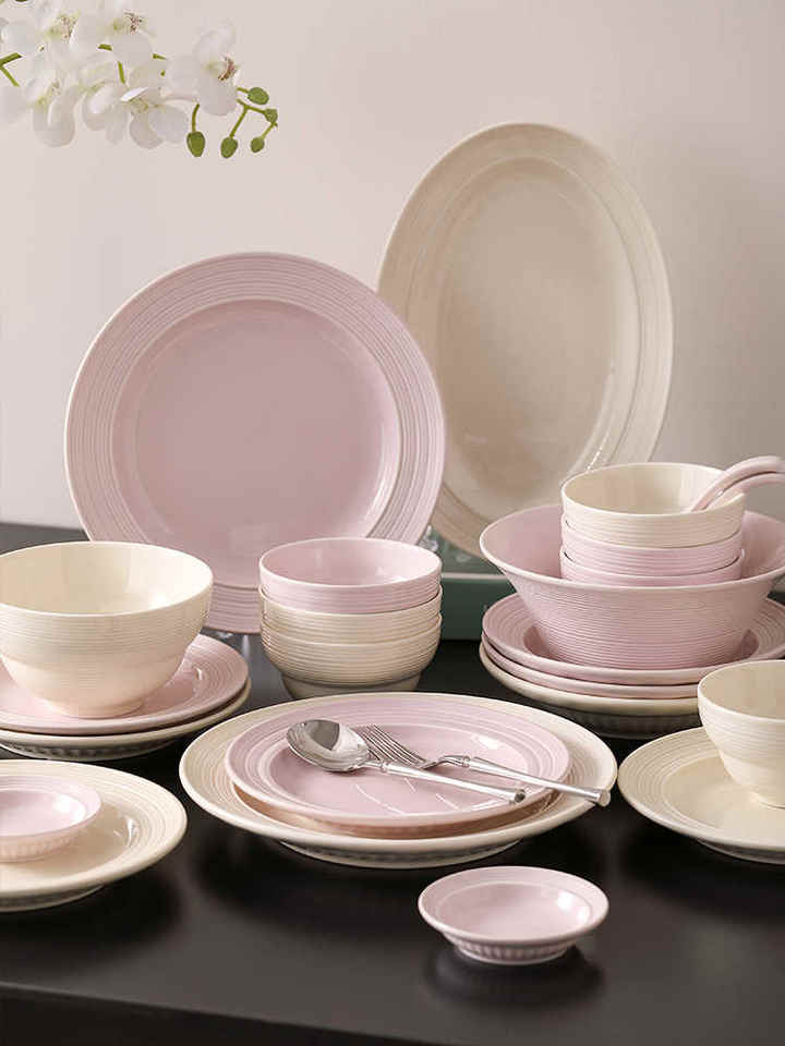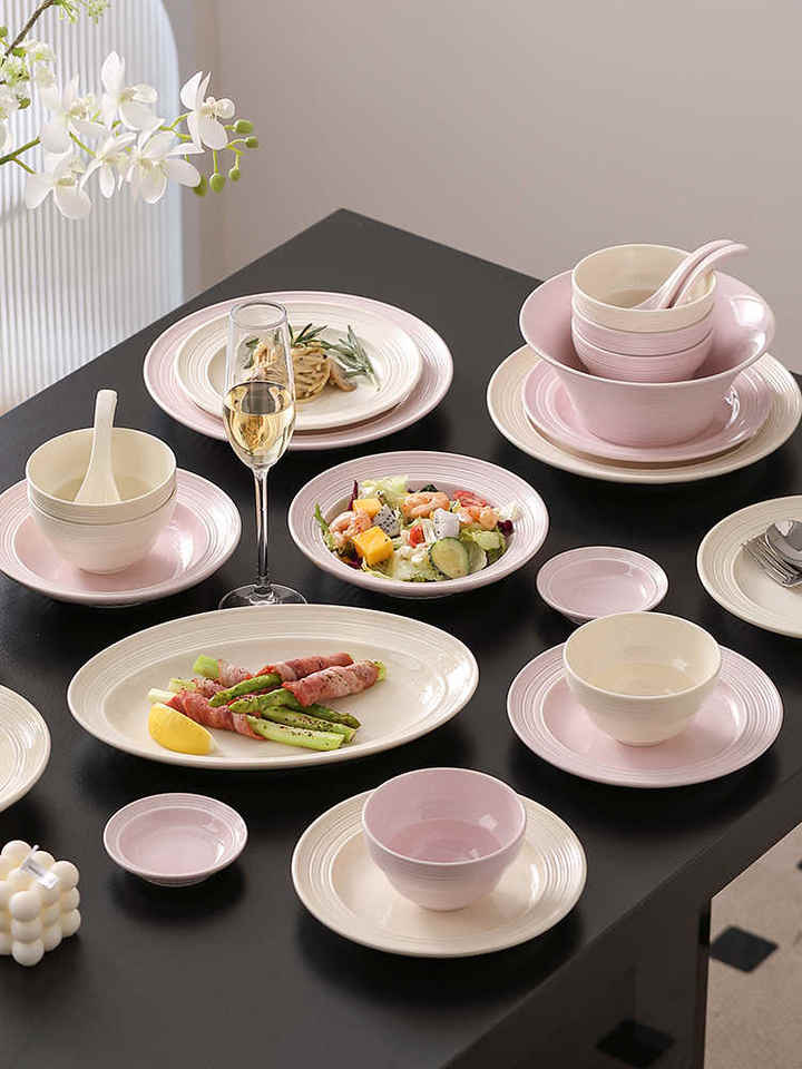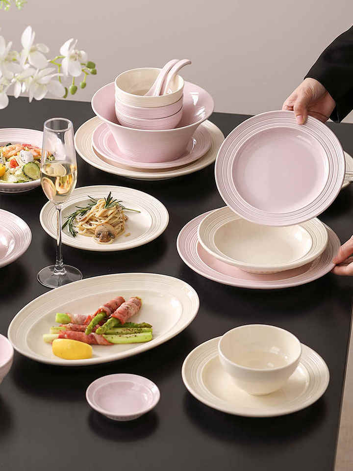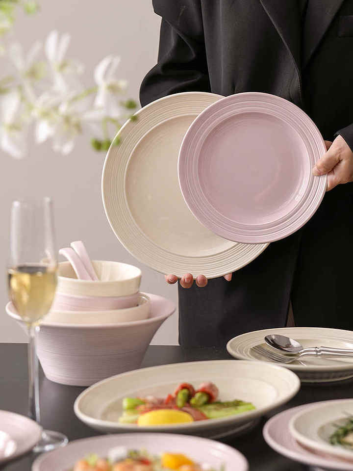 Platos, Tazones y Bandejas de Cerámica Rosa Personalizados de Alta Calidad, Platos para Frutas con Diseño Vintage Creativo de Rayas de Colores, Vajilla al por Mayor