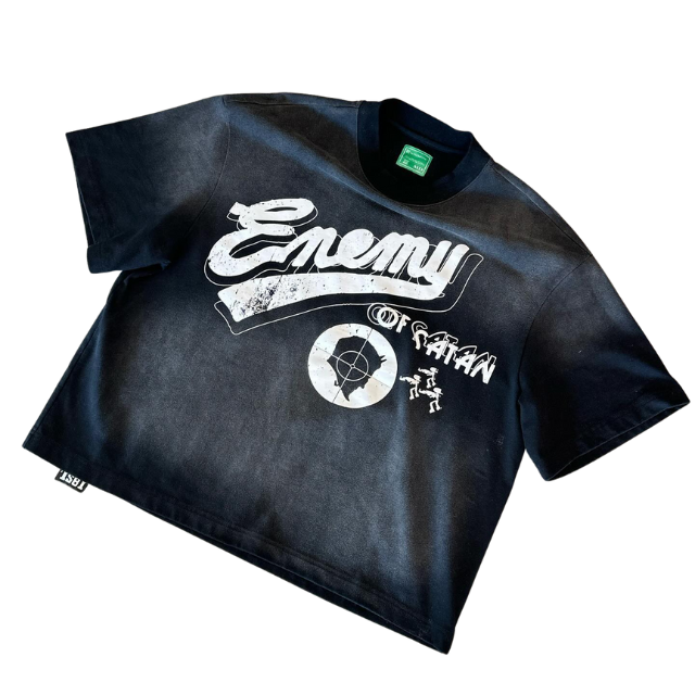 Camiseta de Alta Calidad Personalizada de Poliéster/Algodón, 300 GSM, Lavada con Ácido, Efecto Desteñido, Corte Ajustado, Secado Rápido y Transpirable