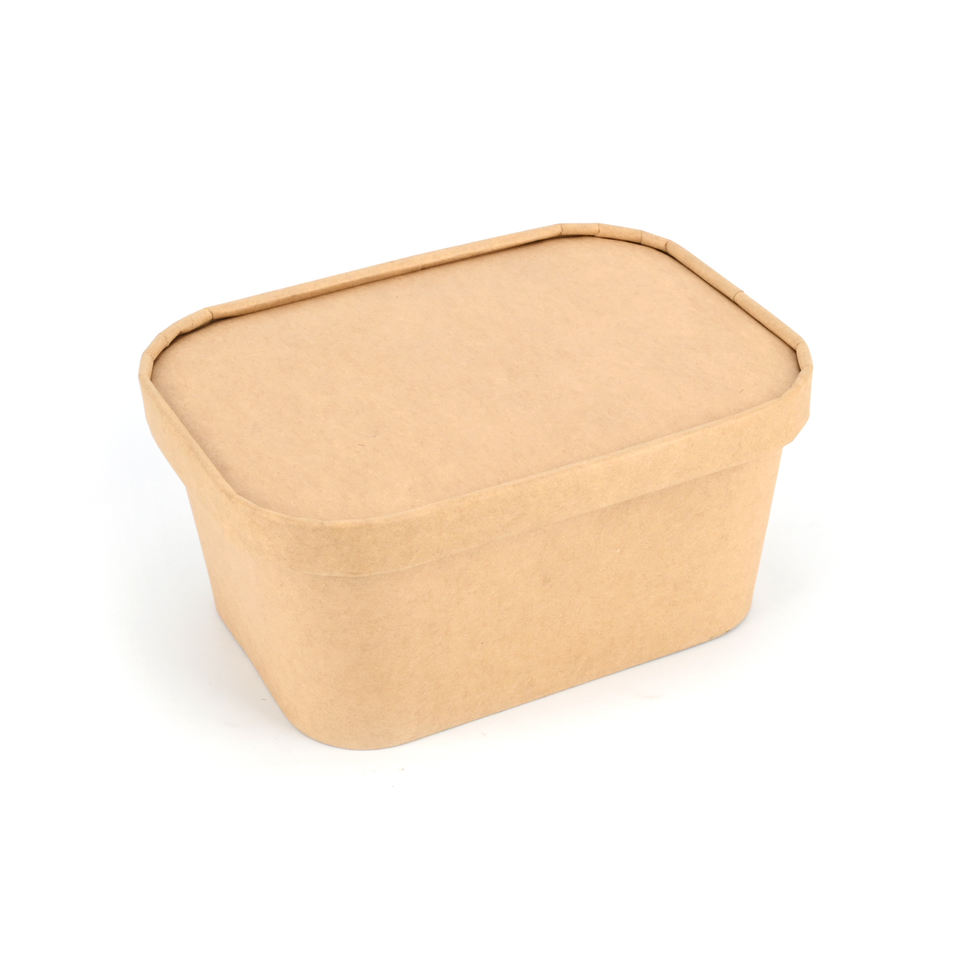 El recipiente redondo se puede usar con alimentos fríos o calientes, está revestido con PE/PLA.