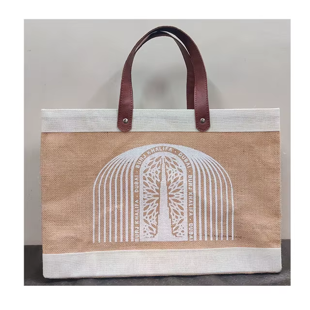 Custom Logo Premium Jute Handbag Eco Friendly Reusable Shoulder Tote Bag with Closure Durable Beach Grocery Shopping Wholesale