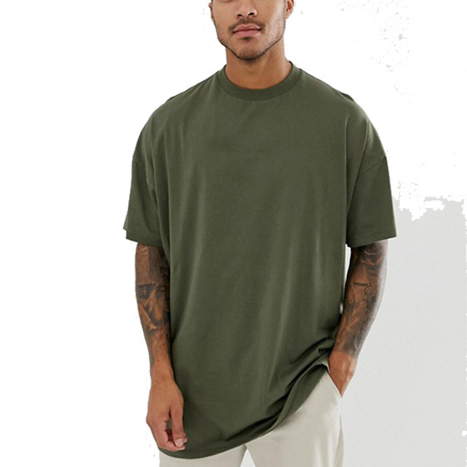 Camiseta de hombro caído de gran tamaño para hombre con estampado personalizado de alta calidad Jersey ropa de calle de algodón largo sólido cuello redondo peso pesado largo