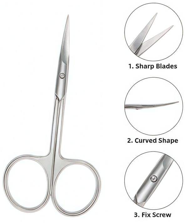Tijeras Profesionales para Cejas de Alta Calidad, Hoja Curva de Acero Inoxidable, Herramientas de Maquillaje para Belleza y Cuidado Personal