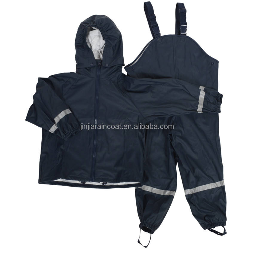 Conjunto de chubasquero de Pu personalizado de alta calidad para niños, niños, bebés, para jugar al aire libre, impermeable, ligero, chaqueta de lluvia y pantalones con pechera