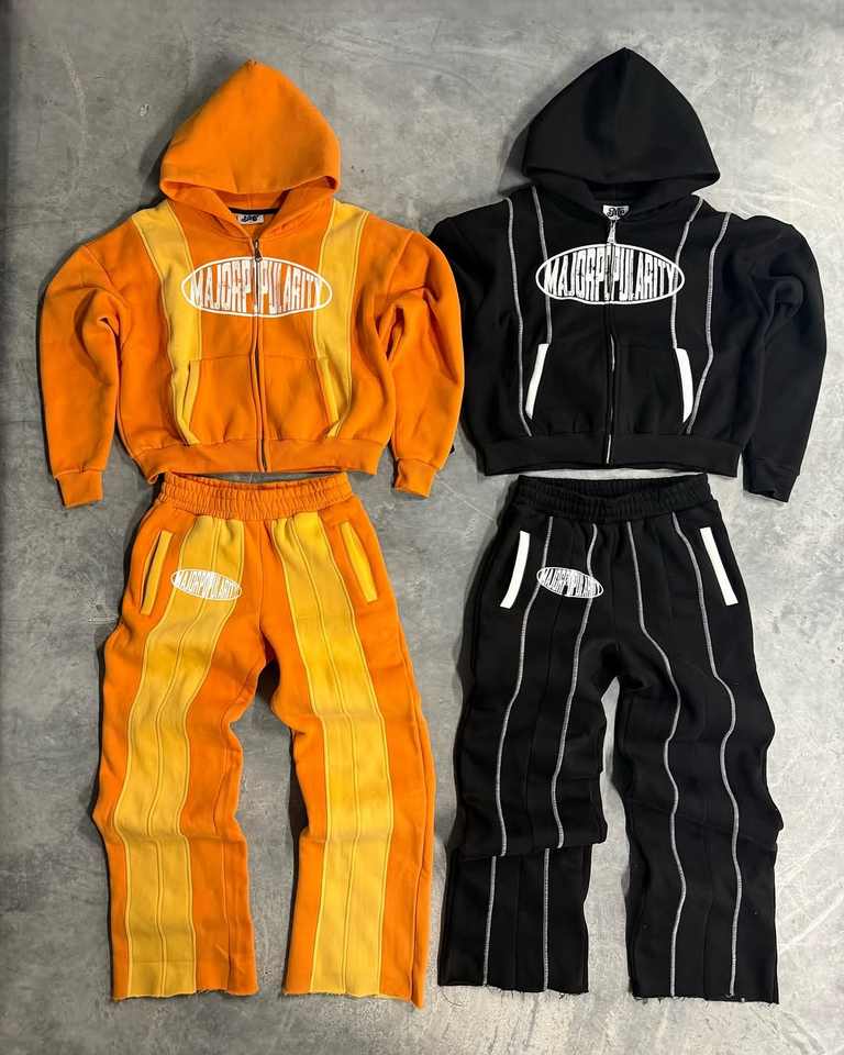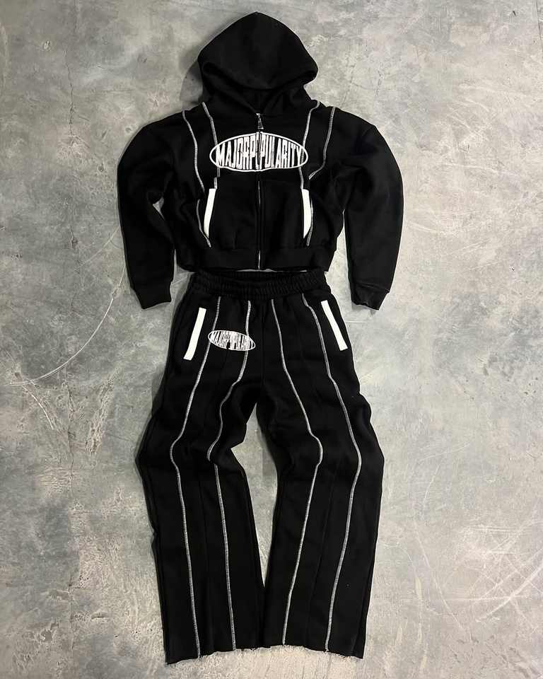 Alta calidad personalizado Puff impreso 100% algodón pesado gran tamaño Jogger conjunto contraste Stitch deportes Sudadera con capucha pantalones de chándal