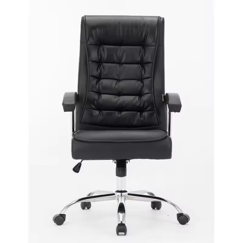 Silla de oficina en casa Retro personalizada de alta calidad, cómoda silla de oficina ejecutiva negra con respaldo alto de cuero PU para jefe ejecutivo