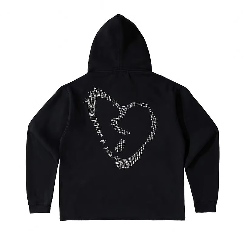Sudadera con capucha bordada con diamantes de imitación personalizados de alta calidad patrón sólido gráfico grueso en blanco con nuevo diseño de tendencia caliente y logotipo perforado