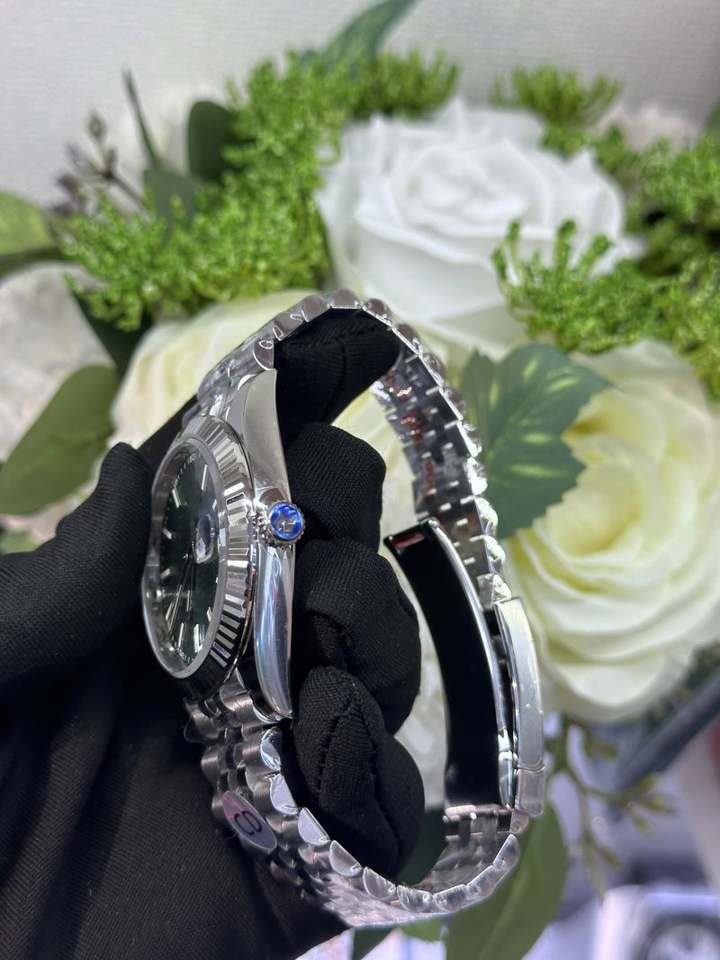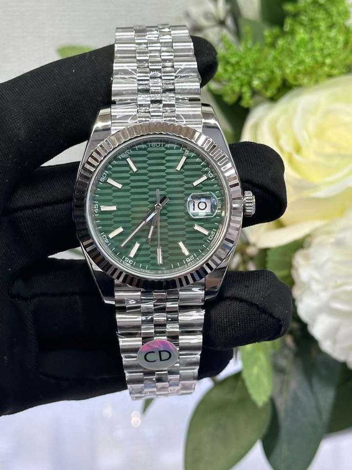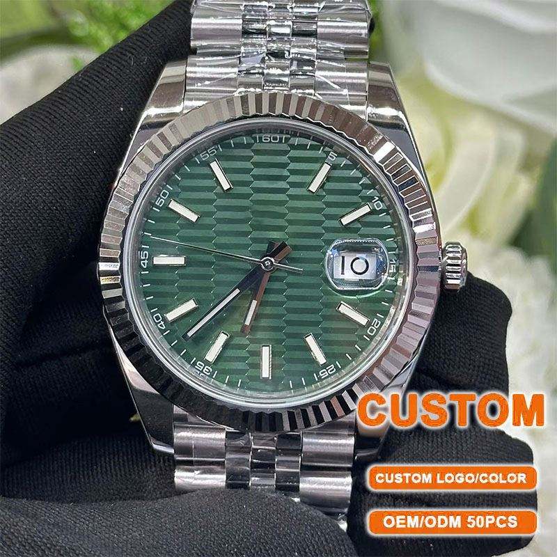 Reloj Mecánico Automático de Alta Calidad con Correa de Acero Inoxidable Plateada y Esfera Verde, Reloj de Pulsera con Calendario al por Mayor