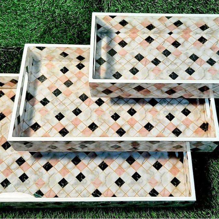 Bandeja de servicio con incrustaciones de resina MDF de alta calidad, tamaño personalizado, diseño decorativo botánico y seguro para alimentos para cocina, hogar o Hotel