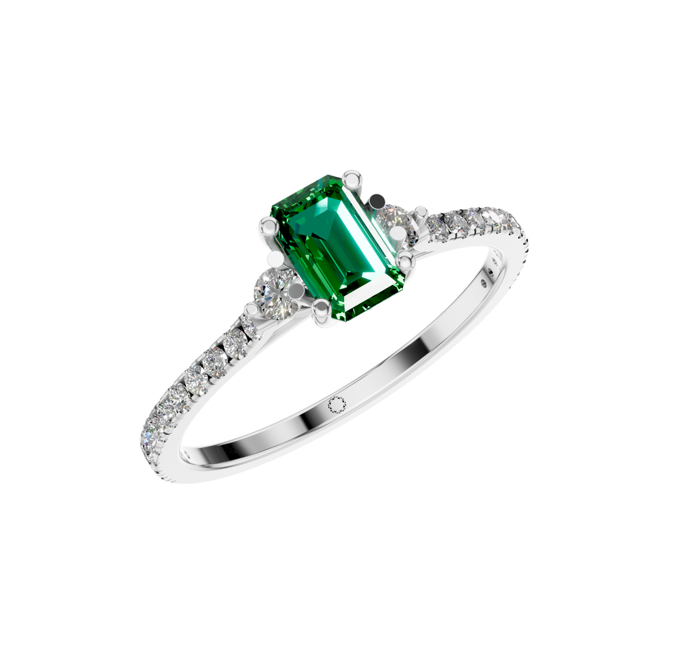 Estilo:Anillo de piedras preciosas de esmeralda natural con detalles de diamantes naturales